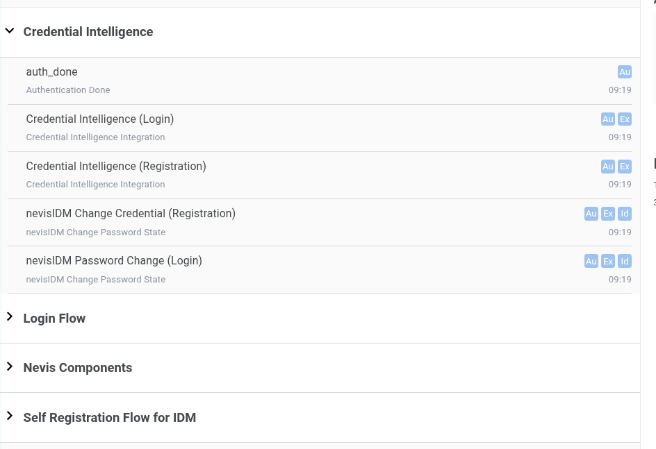 | nevisIDM Change Credential (Login) | nevisIDM Change Password State | If compromised password is detected, when pressing "Change Password" button, this allows the user to alter it. |